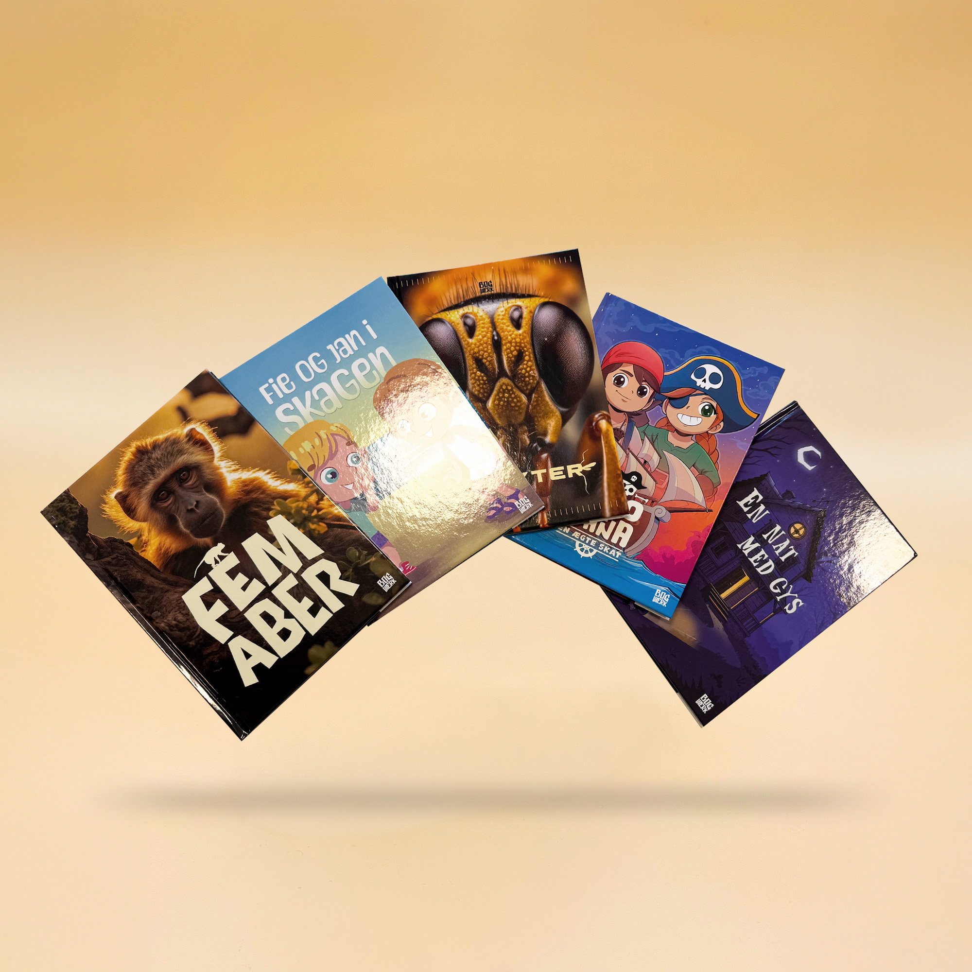 17 flotte og grafiske letlæsningsbøger fordelt på tre niveauer.